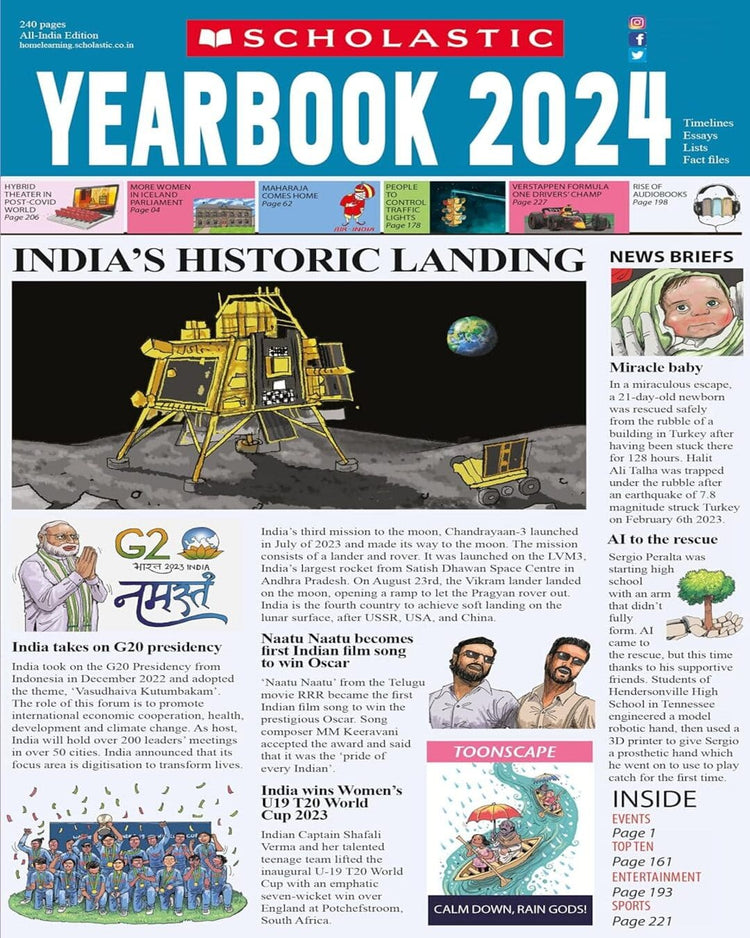 Be the star of quizzes, projects, competitive exams or just a GK champ with this up-to-date round-up of the year’s information. With historical timelines, fun facts and trending news from around the world, this is a must-have, definitive reference book for all. Edition 14 of Scholastic Yearbook brings you: • Major events of India and the world • Popular awards • Facts about India’s states and the world’s countries • World and Indian political round-up • Sports highlights • Environment news • Top ten lists of the biggest, highest, strongest and much more • Developments in science and space • News and views from the world of entertainment