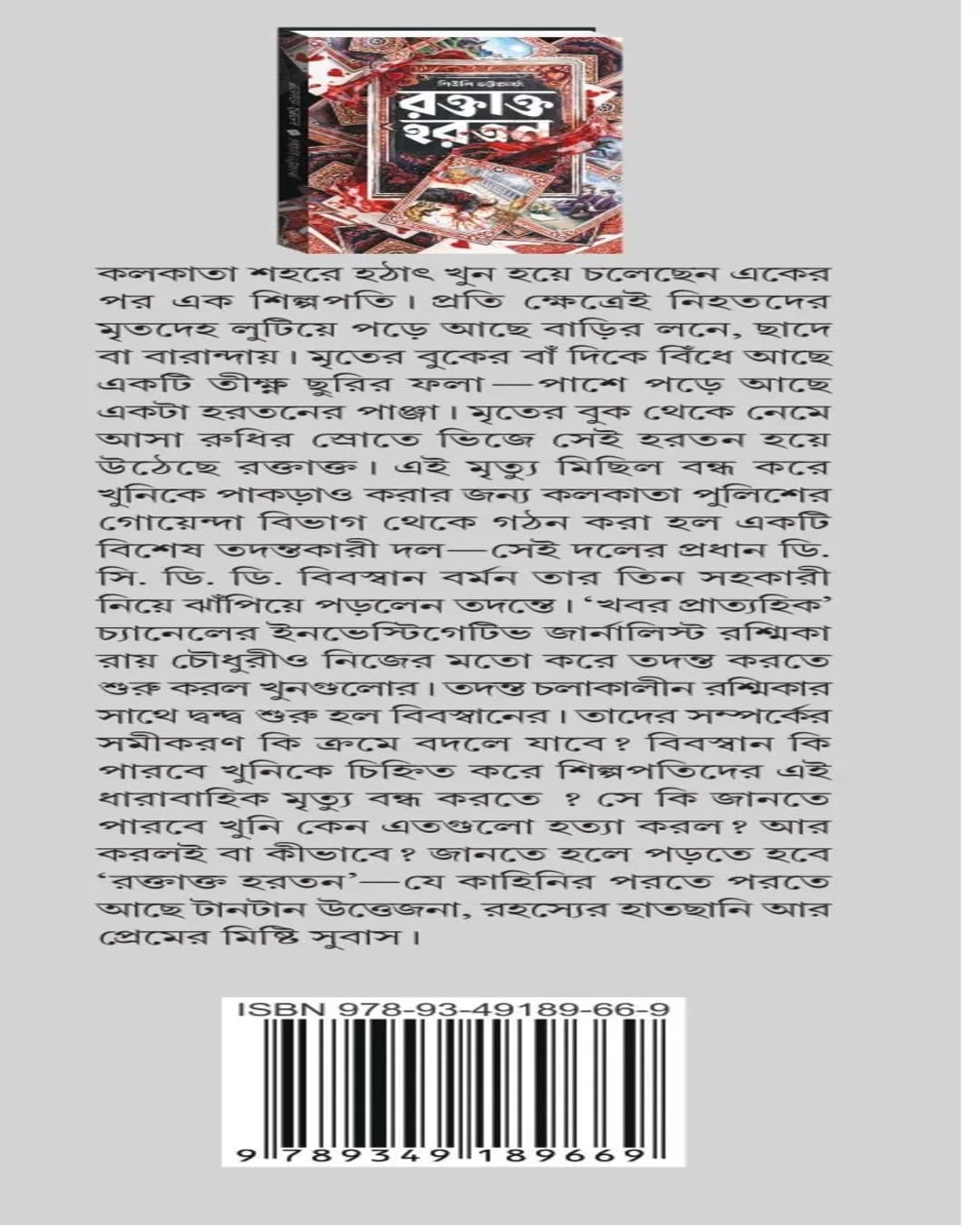 কলকাতা শহরে হঠাৎ খুন হয়ে চলেছেন একের পর এক শিল্পপতি। প্রতি ক্ষেত্রেই নিহতদের মৃতদেহ লুটিয়ে পড়ে আছে বাড়ির লনে, ছাদে বা বারান্দায়। মৃতের বুকের বাঁ দিকে বিঁধে আছে একটি তীক্ষ্ণ ছুরির ফলা-পাশে পড়ে আছে একটা হরতনের পাঞ্জা। মৃতের বুক থেকে নেমে আসা রুধির স্রোতে ভিজে সেই হরতন হয়ে উঠেছে রক্তাক্ত। এই মৃত্যু মিছিল বন্ধ করে খুনিকে পাকড়াও করার জন্য কলকাতা পুলিশের গোয়েন্দা বিভাগ থেকে গঠন করা হল একটি বিশেষ তদন্তকারী দল-সেই দলের প্রধান ডি. সি. ডি. ডি. বিবস্বান বর্মন তার তিন সহকারী নিয়ে ঝাঁপিয়ে পড়লেন তদন্তে। ‘খবর প্রাত্যহিক’ চ্যানেলের ইনভেস্টিগেটিভ জার্নালিস্ট রশ্মিকা রায় চৌধুরীও নিজের মতো করে তদন্ত করতে শুরু করল খুনগুলোর। তদন্ত চলাকালীন রশ্মিকার সাথে দ্বন্দ্ব শুরু হল বিবস্বানের। তাদের সম্পর্কের সমীকরণ কি ক্রমে বদলে যাবে? বিবস্বান কি পারবে খুনিকে চিহ্নিত করে শিল্পপতিদের এই ধারাবাহিক মৃত্যু বন্ধ করতে? সে কি জানতে পারবে খুনি কেন এতগুলো হত্যা করল? আর করলই বা কীভাবে? জানতে হলে পড়তে হবে ‘রক্তাক্ত হরতন’-যে কাহিনির পরতে পরতে আছে টানটান উত্তেজনা, রহস্যের হাতছানি আর প্রেমের মিষ্টি সুবাস।
