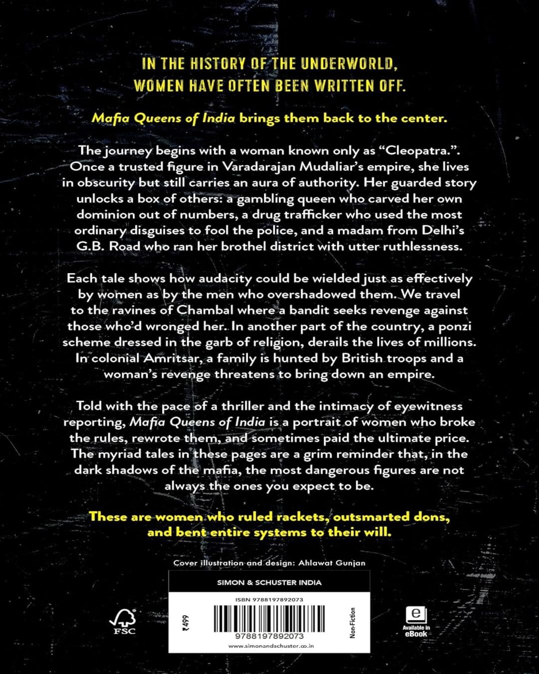 Told with the pace of a thriller and the intimacy of eyewitness reporting, Mafia Queens of India is a portrait of women who broke the rules, rewrote them, and sometimes paid the ultimate price. The myriad tales in these pages are a grim reminder that, in the dark shadows of the mafia, the most dangerous figures are not always the ones you expect to be.