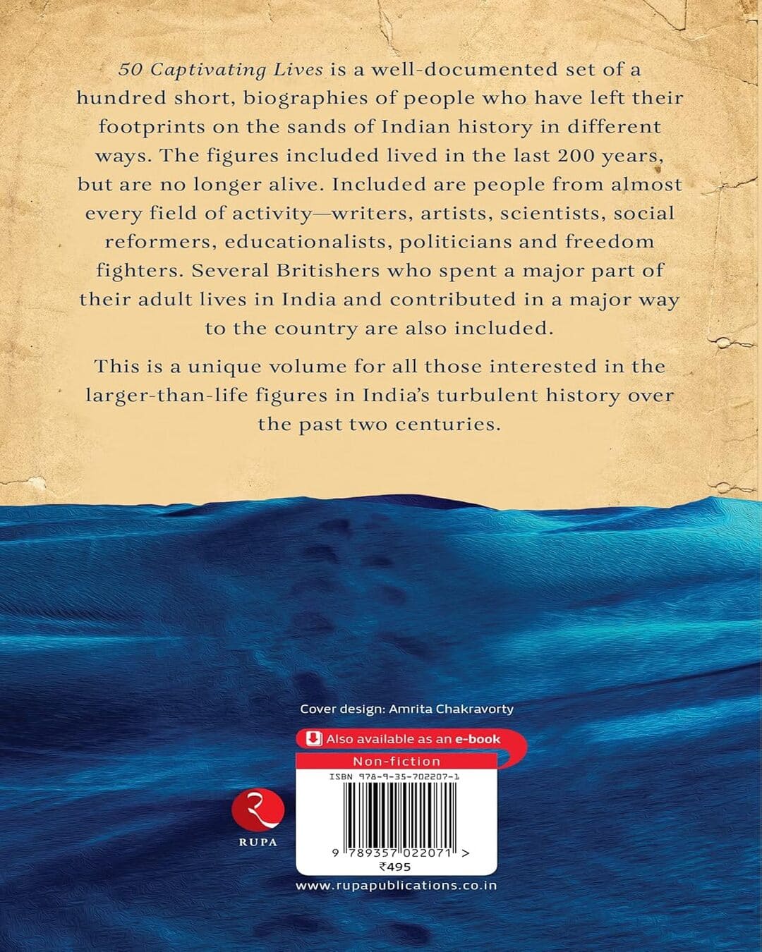 This is a well-documented set of a hundred short biographies of people who have left their footprints in the sands of Indian history in different ways. The figures included lived in the last two hundred years, but are no longer alive. Included are persons from almost every field of activity—writers, artists, scientists, social reformers, educationalists, politicians and freedom fighters. Several British people who spent a major part of their adult lives in India and contributed in a major way to the country are also included.