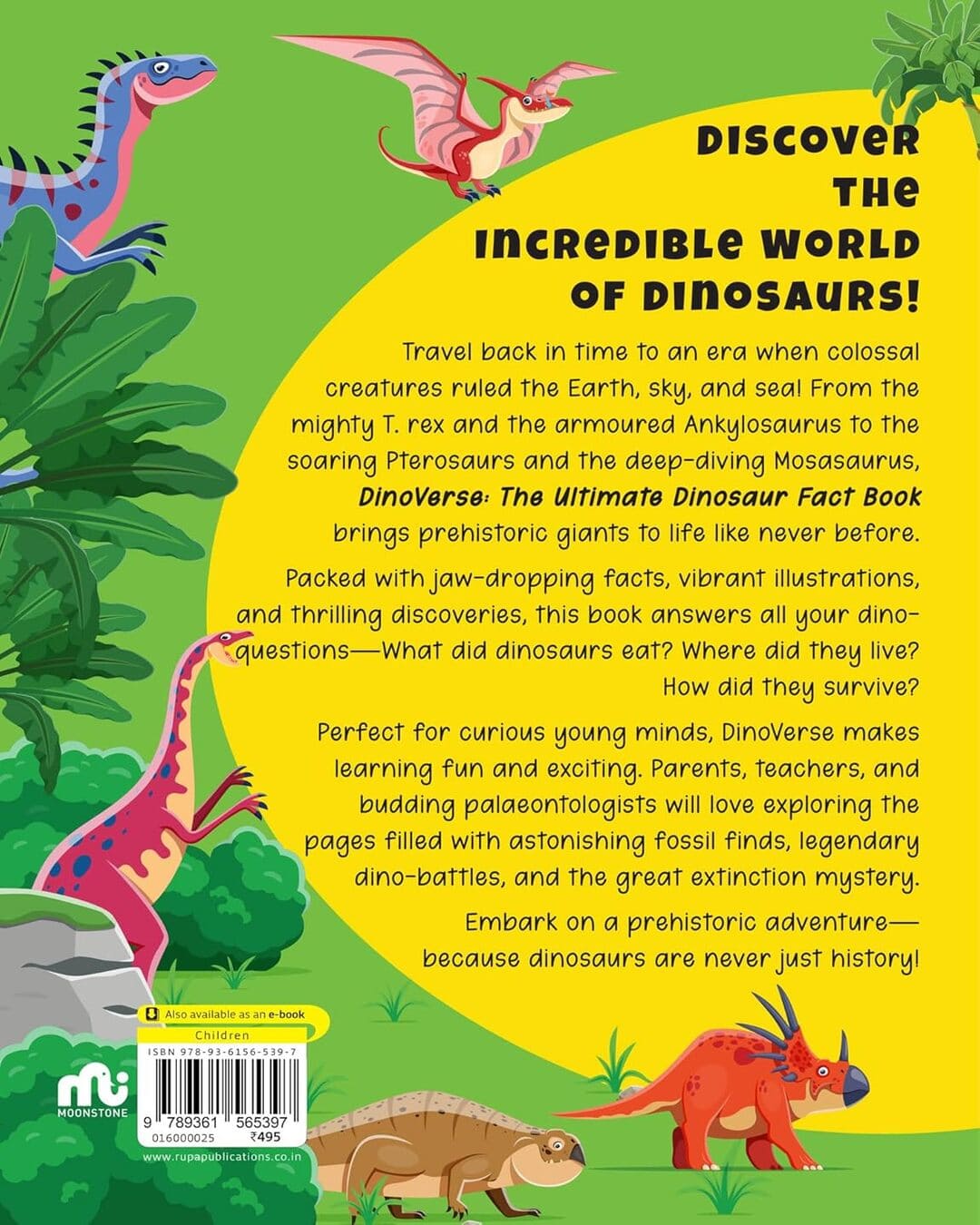 Travel back in time to an era when colossal creatures ruled the Earth, sky, and sea! From the mighty T. rex and the armoured Ankylosaurus to the soaring Pterosaurs and the deep-diving Mosasaurus, DinoVerse: The Ultimate Dinosaur Fact Book brings prehistoric giants to life like never before.