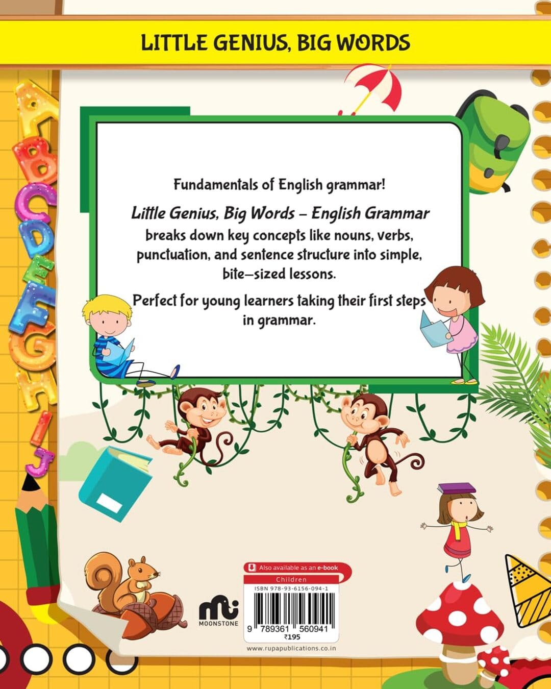 Little Genius, Big Words – English Grammar breaks down key concepts like nouns, verbs, punctuation, and sentence structure into simple, bite-sized lessons.