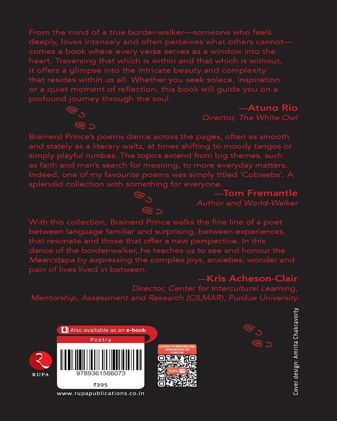 Mearcstapa (Old English: border-walker) is a collection of poems that embody the spirit of integration, interdisciplinarity and dialogue. The poet believes that these can be wisely traversed, while simultaneously recognizing the differences among us as well as the otherness of people. Because when we treat others as ‘persons’ with agency and freedom, it is only then that we discover our own personhood.