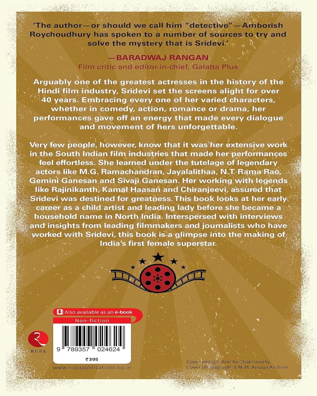 Very few people, however, know that it was her extensive work in the South Indian film industry that made her performances feel effortless. Learning under the tutelage of legendary actors like M.G. Ramachandran, Jayalalithaa, N.T. Rama Rao, Gemini Ganesan and Sivaji Ganesan, as well as working with future legends like Rajinikanth, Kamal Haasan and Chiranjeevi, Sridevi was destined for greatness. This book looks at her early career as a child artist and leading lady before she became a household name in North India. Interspersed with interviews and insights from leading filmmakers and journalists who have worked with Sridevi, this book is a glimpse into the making of India’s first female superstar.